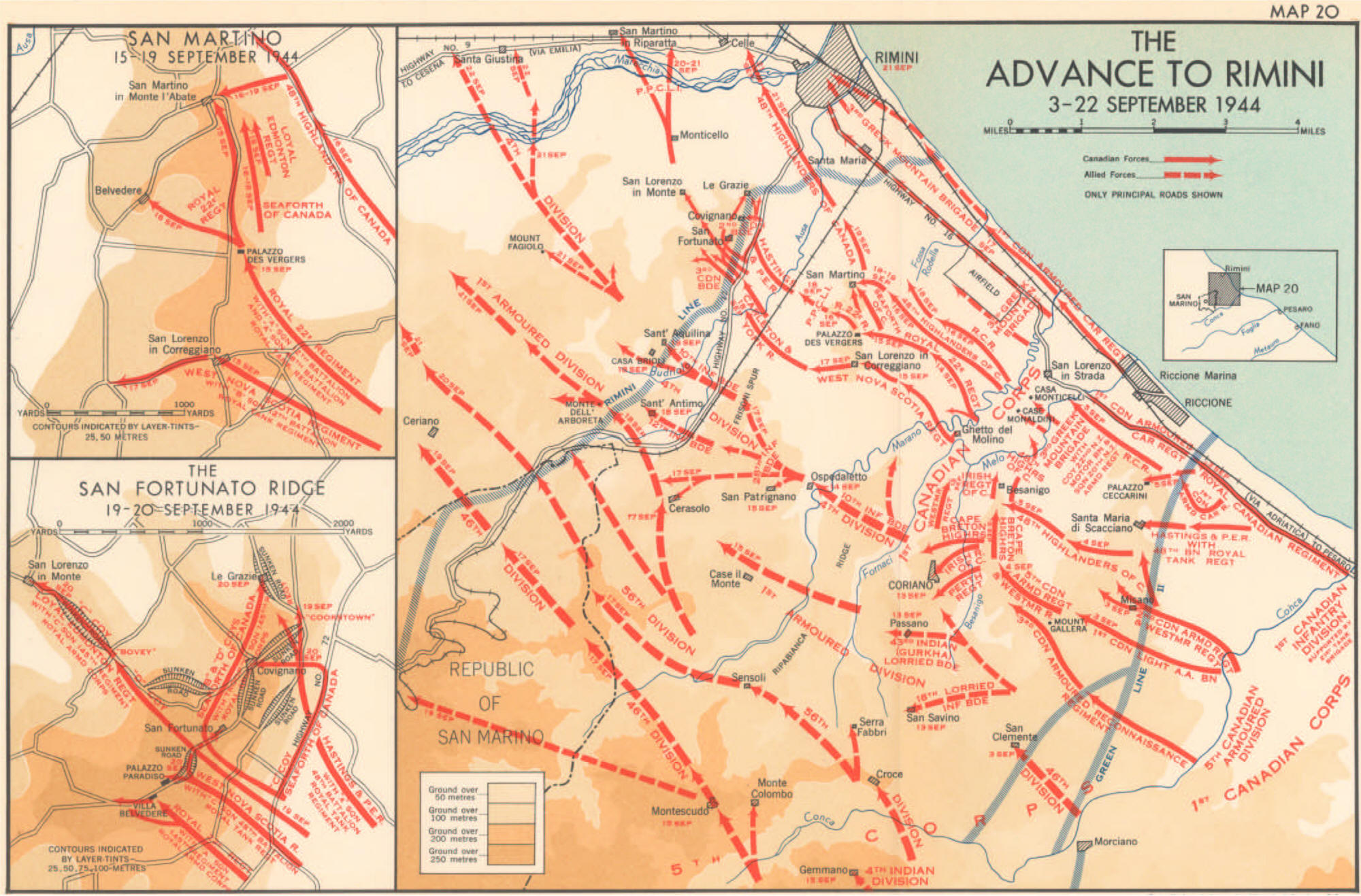 The Canadian advance was characterized by relentless attacks against well-fortified German positions. As the Reader’s Digest account described, the fighting was a “ghastly brew of fire” where the Canadians were constantly met with heavy artillery, machine-gun fire, and counterattacks. Yet, despite the difficult conditions, Canadian troops pushed forward, inch by inch, through the hills, farmlands, and rivers of central and northern Italy.